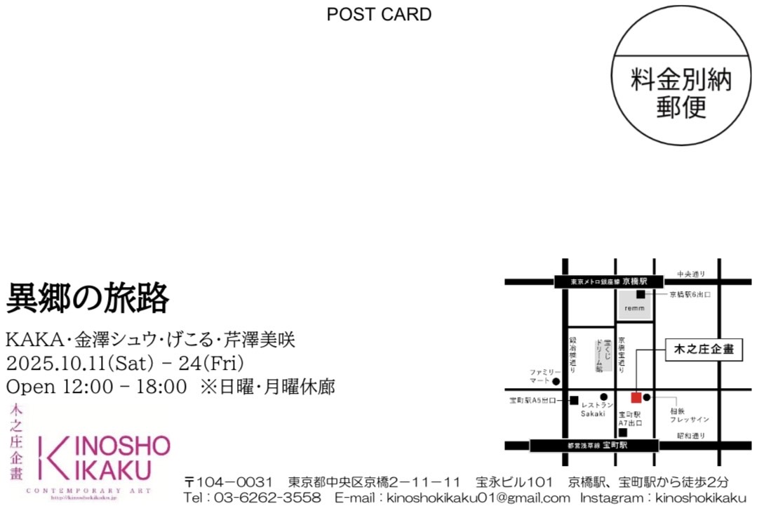 2025年10月11日より木之庄企畫では、グループ展「異郷の旅路」を開催致します。